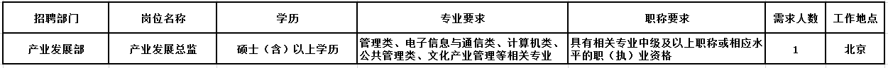 1.管(guan)理類、電子信息與通信類、計算(suan)機類、公(gong)共(gong)管(guan)理類、文(wen)化產業管(guan)理等(deng)相(xiang)關專業,碩士研(yan)究生及以(yi)上學歷(li);