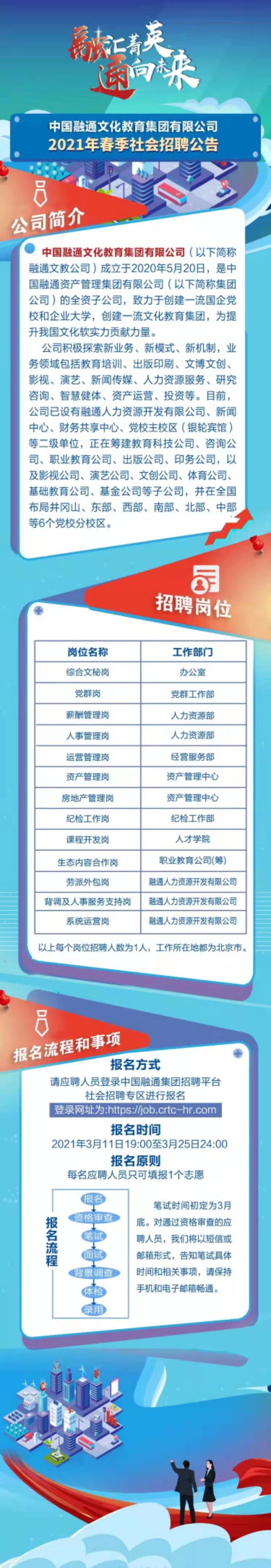 中國融通文化教育集團有限公司2021年春季社會招聘公告