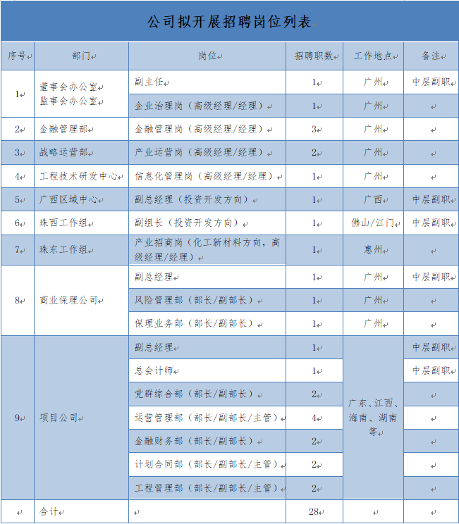 根(gen)據業務發展需要,公司(si)決定面向中(zhong)國(guo)化學內部和社(she)會開(kai)展公開(kai)招聘。現就有關事項(xiang)公告如下: