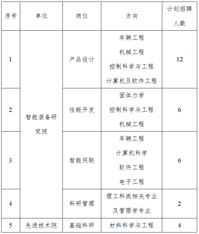 2021年(秋季)招聘(pin),第(di)一批次崗位以集團公司智能裝備研(yan)究院(籌)和先進技術院(籌)相關崗位為主,主要包括: