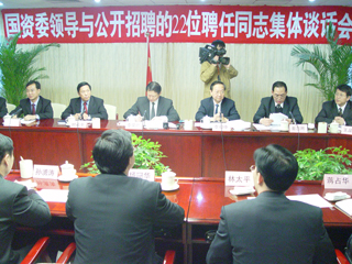 11月12日國資委主(zhu)任李榮融、黨委書記李毅中與聘用的22名同志進行了(le)集體談話(hua)。