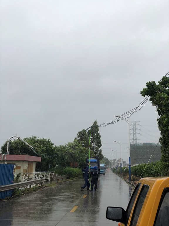 那天(tian),超強臺風(feng)“山(shan)竹”登陸廣東(dong),佛山(shan)全市已經(jing)啟動了氣象災害I級(ji)應急響應,風(feng)力(li)和雨勢都(dou)越(yue)來越(yue)大。作為(wei)一(yi)個(ge)剛入職(zhi)2年的新員工(gong),我還沒有(you)在惡劣天(tian)氣下進行搶修的工(gong)作經(jing)驗。當(dang)天(tian)我正好跟(gen)師(shi)傅(fu)顏炳全負(fu)責南(nan)海獅山(shan)官窯(yao)片區的電力(li)搶修工(gong)作,故(gu)障(zhang)接(jie)連不(bu)斷,我和顏師(shi)傅(fu)從當(dang)天(tian)上午(wu)就(jiu)奔跑各處為(wei)市民處理故(gu)障(zhang),一(yi)刻也沒有(you)停下來過(guo)。到下午(wu)三點左(zuo)右,我和師(shi)傅(fu)接(jie)到報障(zhang)官窯(yao)南(nan)浦(pu)橋附近有(you)導線(xian)垂(chui)落,存(cun)在人員觸電的風(feng)險,于是(shi)我們立即開車趕(gan)過(guo)去。