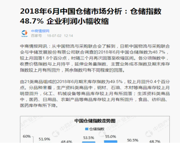 中(zhong)(zhong)國(guo)倉儲指數自(zi)發布之日起便廣泛收(shou)到社會各界及(ji)新聞媒(mei)體的關注,2018年全年,報道“中(zhong)(zhong)國(guo)倉儲指數”發布情況的媒(mei)體超(chao)過60家,其(qi)中(zhong)(zhong)包括中(zhong)(zhong)央(yang)電視臺、中(zhong)(zhong)央(yang)人民廣播電臺、新華(hua)社、中(zhong)(zhong)新社、經濟日報、人民日報、中(zhong)(zhong)國(guo)青年報、現代物流報、中(zhong)(zhong)國(guo)物流與(yu)采(cai)購(gou)雜志(zhi)社、鳳凰財(cai)經網(wang)、搜狐網(wang)、新浪(lang)網(wang)、騰訊(xun)網(wang)、中(zhong)(zhong)國(guo)物流與(yu)采(cai)購(gou)網(wang)等。