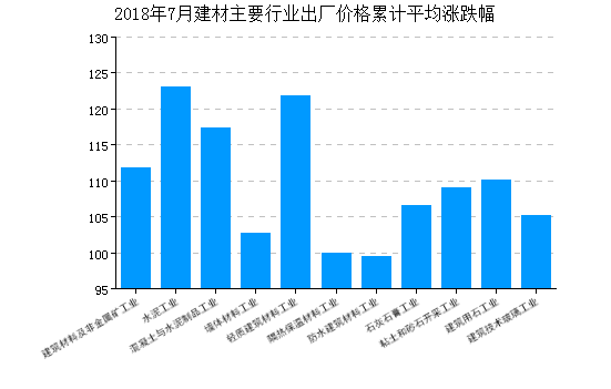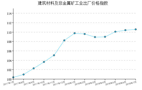 2018年(nian)7月,建(jian)(jian)材(cai)價格(ge)指數(shu)為(wei)110.59,比(bi)(bi)(bi)上(shang)月上(shang)漲0.18%,比(bi)(bi)(bi)去年(nian)同(tong)月上(shang)漲10.18%,一月至(zhi)本月平均比(bi)(bi)(bi)去年(nian)同(tong)期上(shang)漲11.35%。 價格(ge)指數(shu)比(bi)(bi)(bi)上(shang)月上(shang)漲的(de)行業(ye)(ye)(ye)有:混凝(ning)土與水(shui)(shui)(shui)泥制品工(gong)(gong)(gong)(gong)(gong)業(ye)(ye)(ye)、輕質建(jian)(jian)筑(zhu)材(cai)料(liao)(liao)工(gong)(gong)(gong)(gong)(gong)業(ye)(ye)(ye)、隔熱(re)保溫材(cai)料(liao)(liao)工(gong)(gong)(gong)(gong)(gong)業(ye)(ye)(ye)、石灰石膏工(gong)(gong)(gong)(gong)(gong)業(ye)(ye)(ye)、粘土和砂石開(kai)采工(gong)(gong)(gong)(gong)(gong)業(ye)(ye)(ye)、建(jian)(jian)筑(zhu)技術玻(bo)璃工(gong)(gong)(gong)(gong)(gong)業(ye)(ye)(ye)、;價格(ge)指數(shu)比(bi)(bi)(bi)上(shang)月下降的(de)行業(ye)(ye)(ye)有水(shui)(shui)(shui)泥工(gong)(gong)(gong)(gong)(gong)業(ye)(ye)(ye)、墻體(ti)材(cai)料(liao)(liao)工(gong)(gong)(gong)(gong)(gong)業(ye)(ye)(ye)、防水(shui)(shui)(shui)建(jian)(jian)筑(zhu)材(cai)料(liao)(liao)工(gong)(gong)(gong)(gong)(gong)業(ye)(ye)(ye)、建(jian)(jian)筑(zhu)用石工(gong)(gong)(gong)(gong)(gong)業(ye)(ye)(ye)。
