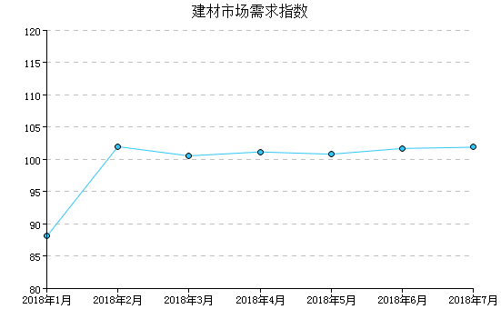 2018年7月,建材市(shi)場需求(qiu)指(zhi)數為101.90,比(bi)上月增加(jia)0.20,比(bi)去年同月減少3.91。 圖(tu) 7:建材市(shi)場需求(qiu)指(zhi)數