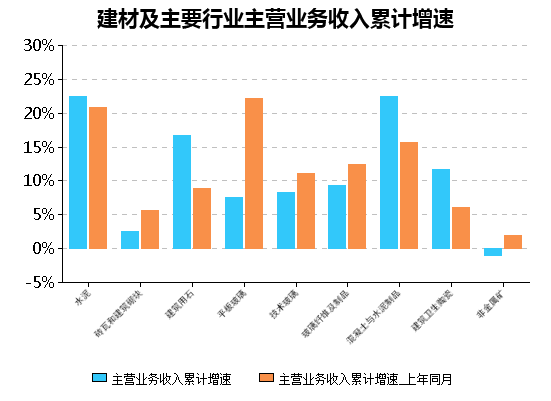 圖 8:建(jian)材及(ji)主要行業(ye)主營業(ye)務(wu)收(shou)入累(lei)計增速