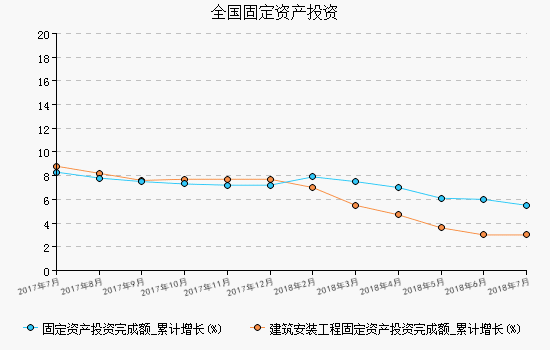 2018年7月(yue)全國固定(ding)資(zi)產投(tou)資(zi)累計增(zeng)速增(zeng)長5.5%,其中(zhong)建筑安裝工程投(tou)資(zi)累計增(zeng)速增(zeng)長3%。 圖 4:全國固定(ding)資(zi)產投(tou)資(zi)情況