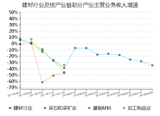 1、規(gui)(gui)模(mo)以(yi)上建(jian)(jian)(jian)材(cai)(cai)行業(ye)(ye)經濟效(xiao)益保持(chi)恢復性增(zeng)(zeng)長(chang) 2017年08月(yue),規(gui)(gui)模(mo)以(yi)上建(jian)(jian)(jian)材(cai)(cai)行業(ye)(ye)主(zhu)營業(ye)(ye)務收入同比增(zeng)(zeng)長(chang)-224.16%,利(li)潤(run)總額(e)同比增(zeng)(zeng)長(chang)-80.07%。 水(shui)泥、混(hun)凝(ning)土與水(shui)泥制(zhi)品、磚瓦和建(jian)(jian)(jian)筑(zhu)砌塊、建(jian)(jian)(jian)筑(zhu)用石(shi)、平板玻璃(li)、技(ji)術玻璃(li)、玻璃(li)纖維及制(zhi)品、建(jian)(jian)(jian)筑(zhu)衛生陶(tao)瓷、非金(jin)屬(shu)礦等產(chan)業(ye)(ye)經濟效(xiao)益大多(duo)保持(chi)減少態勢(shi)。 2、推(tui)動(dong)建(jian)(jian)(jian)材(cai)(cai)行業(ye)(ye)增(zeng)(zeng)長(chang)的動(dong)力結構正(zheng)在轉換 規(gui)(gui)模(mo)以(yi)上基礎材(cai)(cai)料(liao)產(chan)業(ye)(ye)主(zhu)營業(ye)(ye)務收入同比增(zeng)(zeng)長(chang)-76.63%,為(wei)建(jian)(jian)(jian)材(cai)(cai)行業(ye)(ye)增(zeng)(zeng)長(chang)貢(gong)獻-0.53個(ge)百分點(dian);利(li)潤(run)總額(e)同比增(zeng)(zeng)長(chang)9.45%,為(wei)建(jian)(jian)(jian)材(cai)(cai)工業(ye)(ye)利(li)潤(run)增(zeng)(zeng)長(chang)貢(gong)獻3.8個(ge)百分點(dian); 規(gui)(gui)模(mo)以(yi)上加(jia)工制(zhi)品業主營業務收入同比增長-56.71%,為(wei)建(jian)(jian)材(cai)(cai)行業增(zeng)長貢獻(xian)(xian)0.94個百分點;利(li)潤總額同比增(zeng)長-57.41%,為(wei)建(jian)(jian)材(cai)(cai)工業利(li)潤增(zeng)長貢獻(xian)(xian)-1.56個百分點; 建(jian)(jian)材(cai)(cai)行業已經基(ji)本形成上、下游產(chan)業共同發力推動行業增(zeng)長的(de)動力格局(ju)。