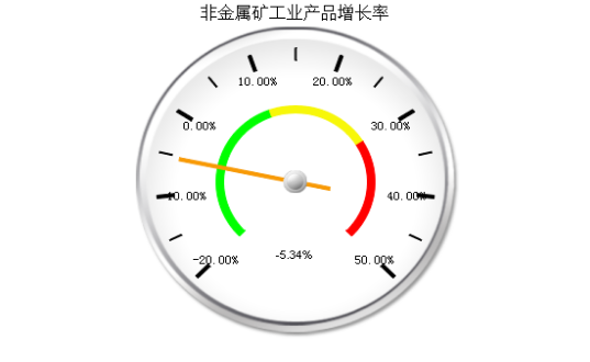 本月全國非金屬礦工業產量同比去年同月減少5.34%,累計增速比上月減少11.24%。