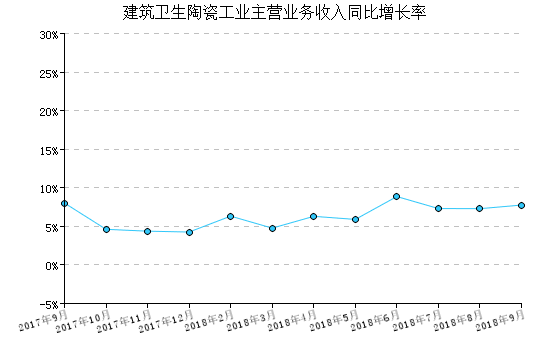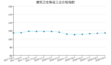 2018年(nian)9月,建筑衛生陶瓷工業(ye)產品出廠價(jia)格指數為103.75,比(bi)上月上漲(zhang)(zhang)0.22%,比(bi)去(qu)(qu)年(nian)同(tong)月上漲(zhang)(zhang)0.02%,一月至(zhi)本月平均比(bi)去(qu)(qu)年(nian)同(tong)期上漲(zhang)(zhang)0.09%。