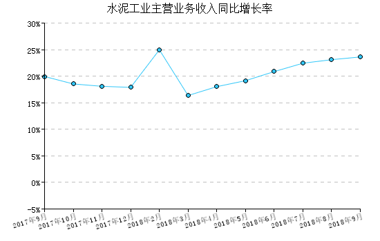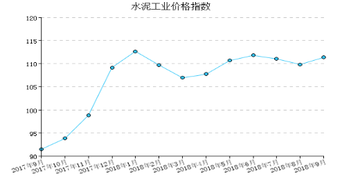 2018年9月,水泥工業產品出廠(chang)價格指(zhi)數為111.36,比(bi)上月上漲(zhang)1.38%,比(bi)去年同月上漲(zhang)21.73%,一(yi)月至(zhi)本月平均比(bi)去年同期上漲(zhang)22.96%。