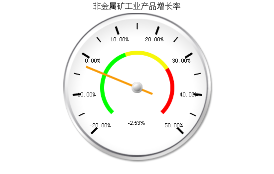 本月全國非金屬礦工業產量同比去年同月減少2.53%,累計增速比上月減少52.62%。