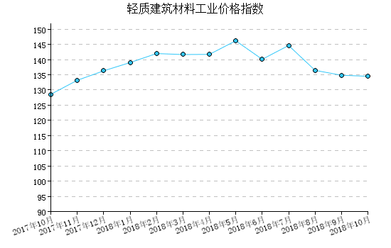 2018年10月(yue),輕質(zhi)建筑材料工業產品出廠價格指數為134.50,比上月(yue)下(xia)降(jiang)0.25%,比去(qu)年同月(yue)上漲4.61%,一月(yue)至本月(yue)平均比去(qu)年同期上漲17.36%。