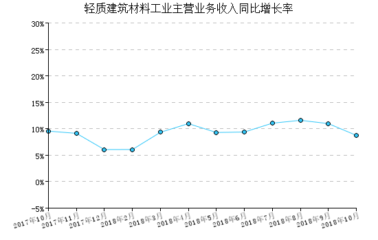 2018年10月規模(mo)以(yi)上工(gong)業(ye)(ye)增(zeng)(zeng)(zeng)(zeng)加值同(tong)比增(zeng)(zeng)(zeng)(zeng)長5.90%,累(lei)計增(zeng)(zeng)(zeng)(zeng)長增(zeng)(zeng)(zeng)(zeng)長6.40%。 跟其他(ta)工(gong)業(ye)(ye)行(xing)業(ye)(ye)相(xiang)比,建材(cai)行(xing)業(ye)(ye)增(zeng)(zeng)(zeng)(zeng)加值增(zeng)(zeng)(zeng)(zeng)速低(di)于設備(bei)制造、電(dian)器(qi)機械和器(qi)材(cai)制造、電(dian)力、熱力生產及供應等行(xing)業(ye)(ye),高于化學(xue)原料和化學(xue)品制造、黑色金屬冶(ye)煉和壓延、有所金屬冶(ye)煉和壓延等行(xing)業(ye)(ye)。