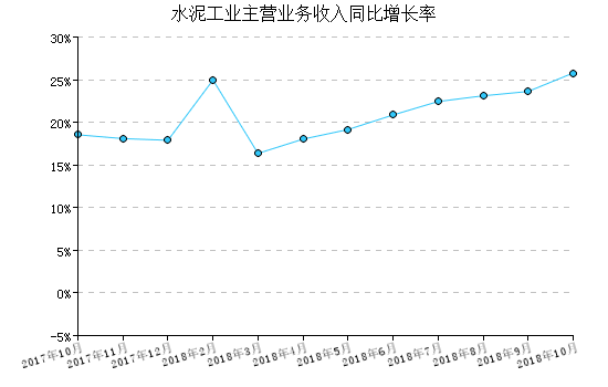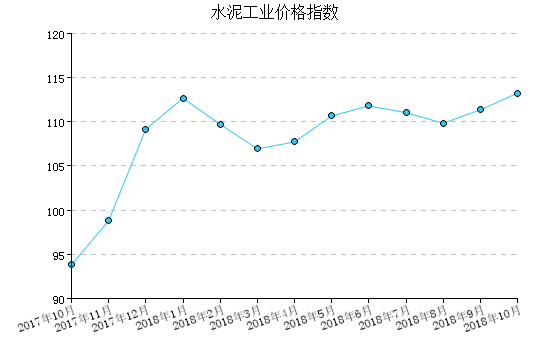 2018年10月,水泥工業(ye)產品出廠價格指數為113.25,比(bi)上(shang)月上(shang)漲1.70%,比(bi)去(qu)年同月上(shang)漲20.72%,一(yi)月至(zhi)本月平均比(bi)去(qu)年同期上(shang)漲22.73%。