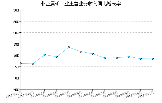 2018年(nian)11月規模以(yi)上工業(ye)增(zeng)加值同比增(zeng)長5.40%,累計增(zeng)長增(zeng)長6.30%。 跟(gen)其他工業(ye)行(xing)業(ye)相比,建(jian)材行(xing)業(ye)增(zeng)加值增(zeng)速低(di)于(yu)設備制造(zao)、電(dian)器機械和(he)器材制造(zao)、電(dian)力、熱(re)力生產及供(gong)應等行(xing)業(ye),高于(yu)化學原料和(he)化學品制造(zao)、黑色金屬冶煉和(he)壓延(yan)、有所(suo)金屬冶煉和(he)壓延(yan)等行(xing)業(ye)。