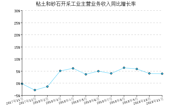本月全國粘土和砂石開采工業產量同比去年同月減少0.56%,累計增速比上月減少71.33%。