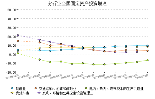 分行業來看:房地產業累計投資增速增長8個百分點;水利、環境和公共設施投資增速保持持平個百分點;交通運輸、倉儲和郵政業投資增速增長4個百分點;制造業投資增速增長10個百分點。