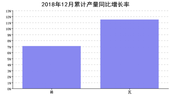 2018年12月(yue)規模(mo)以上工業(ye)(ye)增加值同比增長5.70%,累(lei)計增長增長6.20%。 跟其他(ta)工業(ye)(ye)行業(ye)(ye)相比,建(jian)材行業(ye)(ye)增加值增速低于設備制造(zao)、電器機械和(he)器材制造(zao)、電力、熱力生(sheng)產及供應等行業(ye)(ye),高于化(hua)學原料和(he)化(hua)學品制造(zao)、黑色金屬冶(ye)煉和(he)壓延、有所金屬冶(ye)煉和(he)壓延等行業(ye)(ye)。