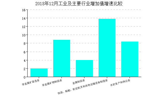 2018年12月規(gui)模以上工業(ye)增加值(zhi)同比增長5.70%,累計增長增長6.20%。 跟其他工業(ye)行(xing)業(ye)相比,建材行(xing)業(ye)增加值(zhi)增速低于設備(bei)制(zhi)(zhi)造、電器機械(xie)和(he)器材制(zhi)(zhi)造、電力、熱(re)力生產及供應等(deng)行(xing)業(ye),高于化(hua)學原料和(he)化(hua)學品制(zhi)(zhi)造、黑色金(jin)屬冶煉和(he)壓延、有所(suo)金(jin)屬冶煉和(he)壓延等(deng)行(xing)業(ye)。