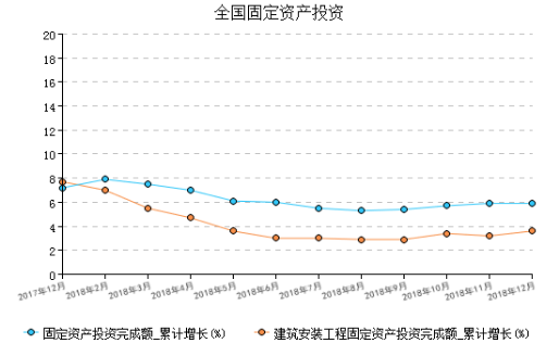 2018年12月全(quan)國固(gu)定資產投資累(lei)(lei)計增速增長5.9%,其中建(jian)筑安裝工程投資累(lei)(lei)計增速增長3.6%。