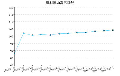 2018年(nian)12月,建材市場需求指數為104.17,比上月增加0.43,比去年(nian)同月增加3.38%。