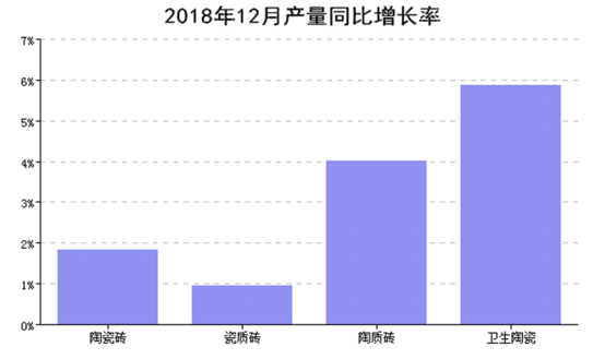 2018年(nian)12月(yue)規模以上工業(ye)(ye)(ye)(ye)增(zeng)加值(zhi)同(tong)比(bi)增(zeng)長5.70%,累計增(zeng)長增(zeng)長6.20%。 跟其(qi)他工業(ye)(ye)(ye)(ye)行業(ye)(ye)(ye)(ye)相比(bi),建材行業(ye)(ye)(ye)(ye)增(zeng)加值(zhi)增(zeng)速低于設備制(zhi)(zhi)造(zao)(zao)、電器機械和(he)(he)器材制(zhi)(zhi)造(zao)(zao)、電力、熱力生產及供應等(deng)行業(ye)(ye)(ye)(ye),高于化(hua)學(xue)原料和(he)(he)化(hua)學(xue)品制(zhi)(zhi)造(zao)(zao)、黑色金(jin)屬(shu)冶煉(lian)和(he)(he)壓延、有(you)所金(jin)屬(shu)冶煉(lian)和(he)(he)壓延等(deng)行業(ye)(ye)(ye)(ye)。