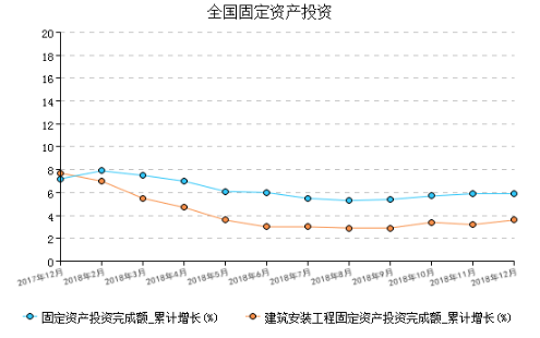 2018年12月全國固定資(zi)產投資(zi)累計增速增長5.9%,其中建(jian)筑安(an)裝工程投資(zi)累計增速增長3.6%。