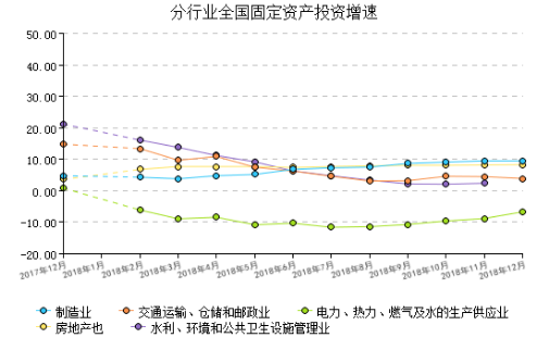 分行業來看:房地產業累計投資增速增長8個百分點;水利、環境和公共設施投資增速保持持平個百分點;交通運輸、倉儲和郵政業投資增速增長4個百分點;制造業投資增速增長10個百分點。