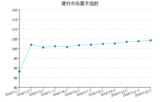 2018年(nian)12月(yue)(yue),建材市場需求(qiu)指數為104.17,比上月(yue)(yue)增加(jia)0.43,比去年(nian)同(tong)月(yue)(yue)增加(jia)3.38%。