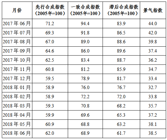表1 2017年6月至2018年6月中(zhong)色鉛鋅產業月度景(jing)氣指數