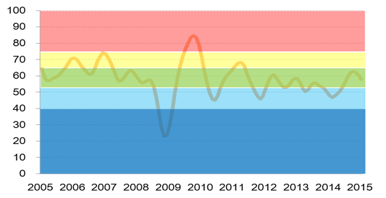圖1中色(se)鋁冶煉(lian)產業(ye)景氣(qi)指數(shu)趨勢(shi)圖