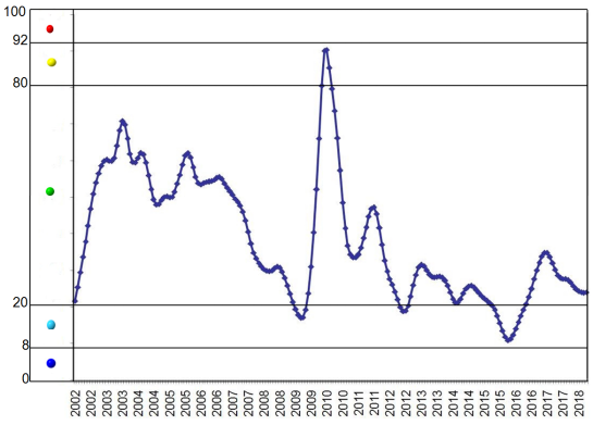 2017年(nian)5月至2018年5月有色金屬產業(ye)景氣指數