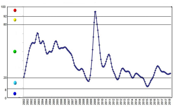 2018年6月,中經有色金屬產業景氣指數為25.7,較上月上升0.4個百分點;中經有色金屬產業先行指數為62.6,較上月上升0.2個百分點;一致指數為69.0,較上月上升0.2個百分點。初步判斷,中經有色金屬產業景氣指數在“正常”區間比較平穩運行。