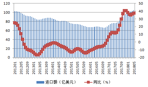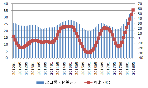 經季節調整,5月份有色金屬產品進口額為104.7 億美元,同比、環比分別上升37.3%和1.2%;出口額為 34.5億元,同比、環比分別上漲57.2和3.0%。