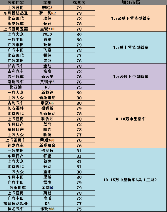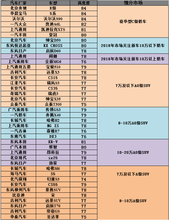 汽(qi)(qi)(qi)(qi)(qi)車(che)行業滿(man)(man)意(yi)度提升(sheng),自主品牌(pai)(pai)貢(gong)獻更(geng)大。數(shu)據(ju)(ju)顯(xian)示,自主品牌(pai)(pai)滿(man)(man)意(yi)度78分(fen),同(tong)比提高2分(fen);合資品牌(pai)(pai)80分(fen),同(tong)比提高1分(fen)。測評結果顯(xian)示,一汽(qi)(qi)(qi)(qi)(qi)奔騰、長安、上汽(qi)(qi)(qi)(qi)(qi)榮威、廣汽(qi)(qi)(qi)(qi)(qi)傳祺、北汽(qi)(qi)(qi)(qi)(qi)紳(shen)寶(bao)、吉利、長城(cheng)、比亞迪、奇瑞、江淮、五菱、寶(bao)駿等自主品牌(pai)(pai)今年都有車(che)型斬獲(huo)細(xi)分(fen)市場滿(man)(man)意(yi)度第一名。其中很(hen)重要的(de)原因是,自主品牌(pai)(pai)根(gen)據(ju)(ju)用戶(hu)需求(qiu)不(bu)斷進(jin)行技術(shu)研發(fa)與管理創新,持續贏得用戶(hu)滿(man)(man)意(yi)。尤其在應(ying)用汽(qi)(qi)(qi)(qi)(qi)車(che)電子化、網(wang)聯技術(shu),制造互聯網(wang)汽(qi)(qi)(qi)(qi)(qi)車(che)等方(fang)面(mian)取得積極進(jin)展。數(shu)據(ju)(ju)表明,即使(shi)在價格15萬左右的(de)汽(qi)(qi)(qi)(qi)(qi)車(che)細(xi)分(fen)市場,自主品牌(pai)(pai)的(de)競爭(zheng)力都有了明顯(xian)提升(sheng)。