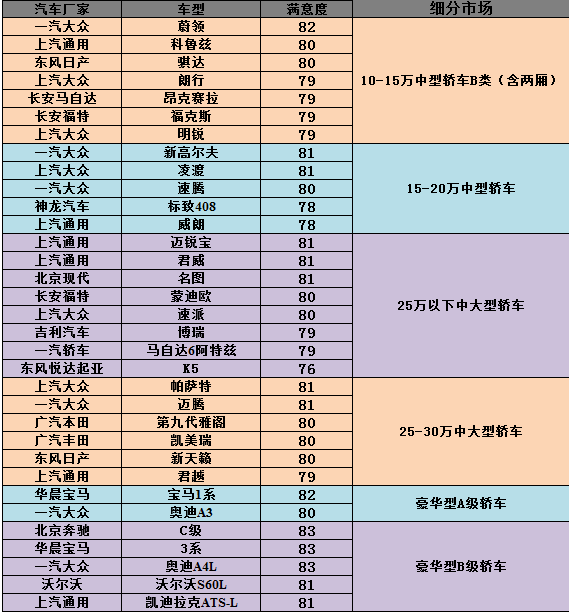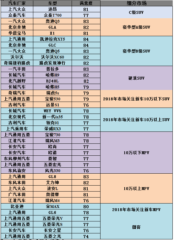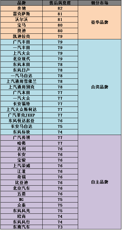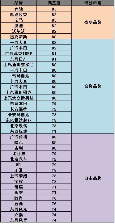 合(he)資品(pin)(pin)牌(pai)中,德系(xi)(xi)(xi)滿(man)意度81分(fen),同比(bi)(bi)提(ti)高(gao)1分(fen);日系(xi)(xi)(xi)滿(man)意度80分(fen),同比(bi)(bi)提(ti)高(gao)1分(fen);美系(xi)(xi)(xi)滿(man)意度80分(fen),同比(bi)(bi)提(ti)高(gao)2分(fen);韓系(xi)(xi)(xi)滿(man)意度78分(fen),同比(bi)(bi)提(ti)高(gao)1分(fen);法(fa)系(xi)(xi)(xi)77分(fen),與去年持平(ping)。韓系(xi)(xi)(xi)和法(fa)系(xi)(xi)(xi)品(pin)(pin)牌(pai)在贏得(de)用戶(hu)滿(man)意和市(shi)場份額方面(mian)遭受到自主品(pin)(pin)牌(pai)的(de)強力挑戰。