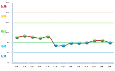 2018年9月塑料薄(bo)膜制(zhi)造行(xing)業景氣(qi)指數為89.85,較8月下降(jiang)2.34個點。進入9月,指數在運行(xing)2個月的綠(lv)色穩定(ding)區(qu)間后重新(xin)轉(zhuan)入漸冷區(qu)間運行(xing)(見圖1)。