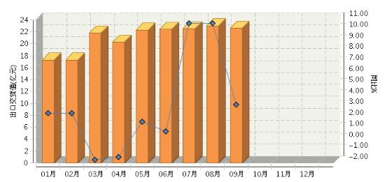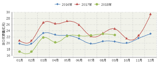 9月(yue)份,塑(su)料(liao)薄膜制造行(xing)業規模以上企業完成(cheng)(cheng)出口(kou)交貨(huo)(huo)值(zhi)(zhi)22.65億元,同(tong)(tong)比增(zeng)長3.28%。較8月(yue)份下降7.40個(ge)百分點(見(jian)圖3)。1月(yue)-9月(yue),完成(cheng)(cheng)出口(kou)交貨(huo)(huo)值(zhi)(zhi)184.18億元,同(tong)(tong)比增(zeng)長3.19%。全(quan)國塑(su)料(liao)薄膜制造行(xing)業連(lian)續三年(nian)月(yue)度出口(kou)交貨(huo)(huo)值(zhi)(zhi)對比見(jian)圖4。