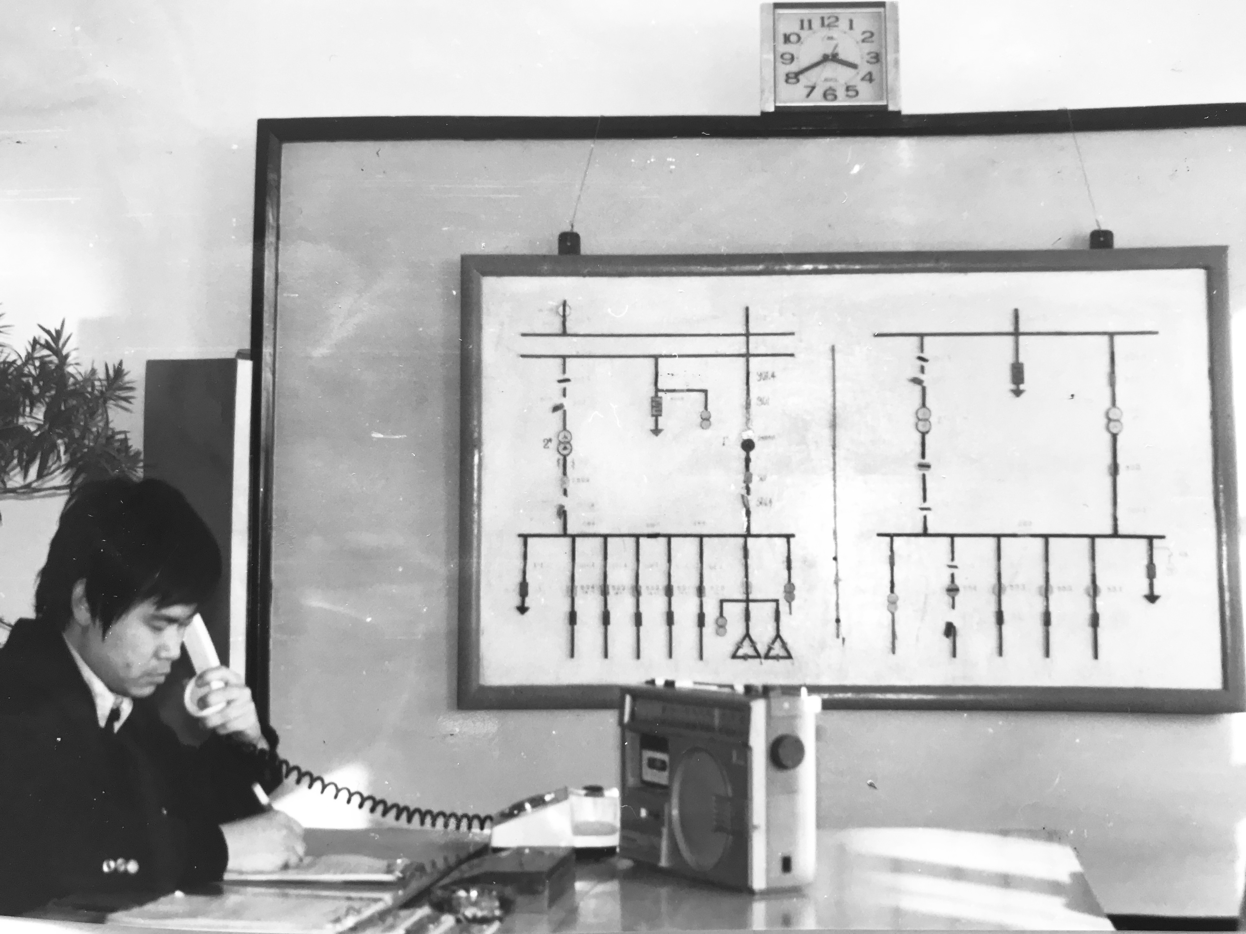 照片(pian)拍攝于上世紀80年(nian)(nian)代,是調(diao)度室青年(nian)(nian)職工工作中的一幕,照片(pian)的背后是老(lao)一代電力人愛崗敬業的縮(suo)影。