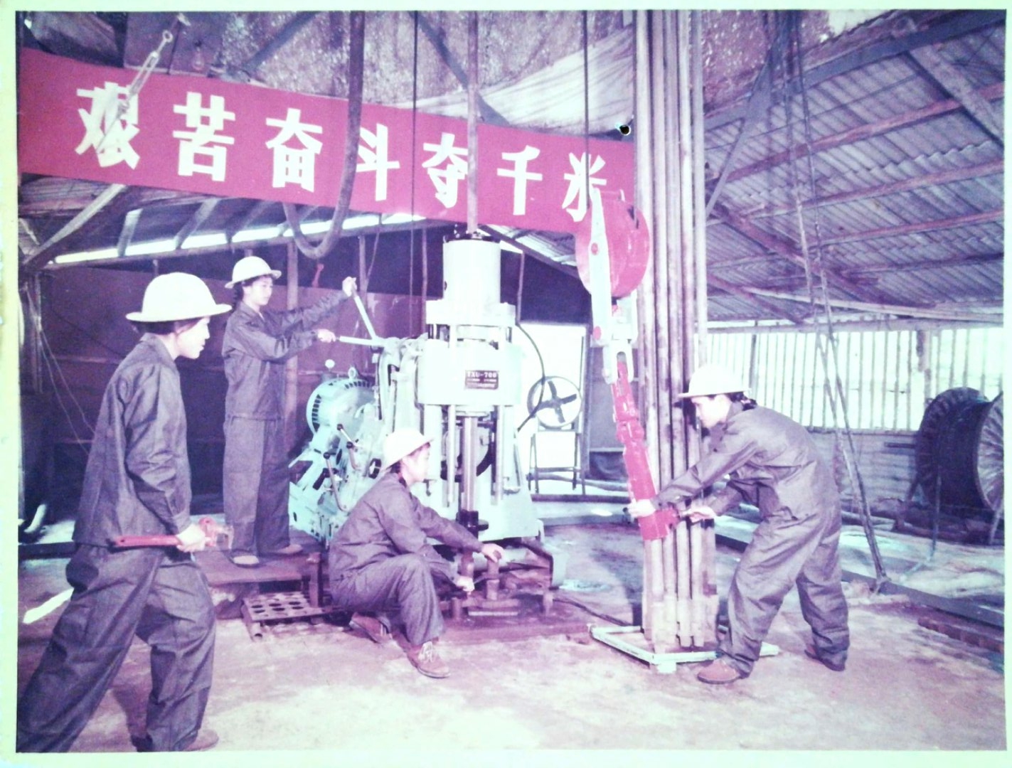 上世紀(ji)70年(nian)代中國煤炭地質總局響應“婦女能頂半邊(bian)天”的(de)號(hao)召(zhao),首創了“三八鉆機”,這是1970年(nian)鉆探項目(mu)上女鉆工正(zheng)在艱苦奮斗勇奪千米(mi)作業(ye)。