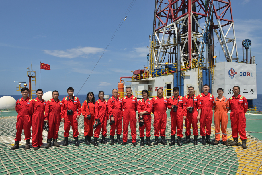 “奮斗者(zhe)2019‘視覺新(xin)國企’攝(she)影(ying)(ying)展”線下攝(she)影(ying)(ying)采(cai)風團抵(di)達“南海二(er)號(hao)”鉆井平臺。(宮瑞卿 攝(she))