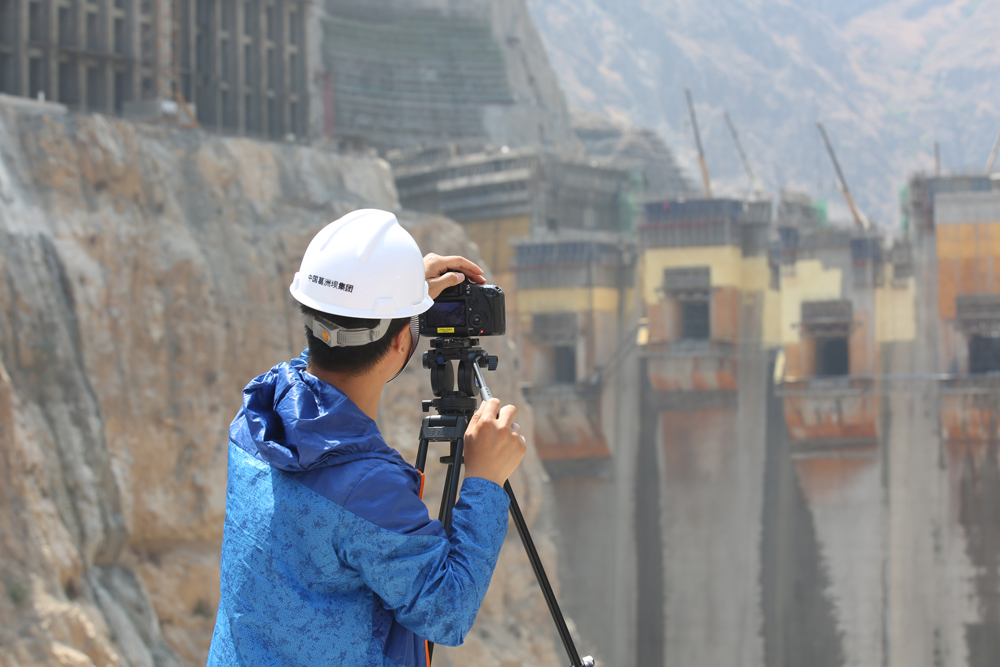 攝影師(shi)對烏東德水(shui)電(dian)站大壩主體(ti)進行(xing)拍攝 攝影/劉海草