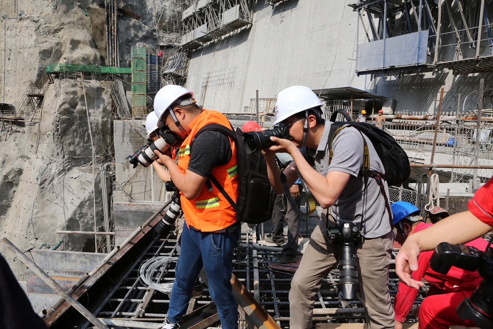 攝(she)影(ying)師(shi)們在(zai)烏東德水電站二道壩施工現場進行創作(zuo) 攝(she)影(ying)/趙彤
