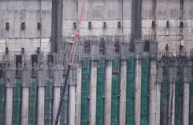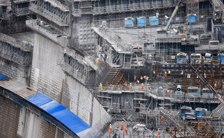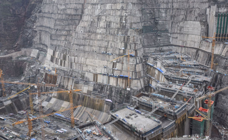 這是6月26日在四川省寧南縣拍攝的白鶴灘水電站建設工地。(記者 薛玉斌 攝)