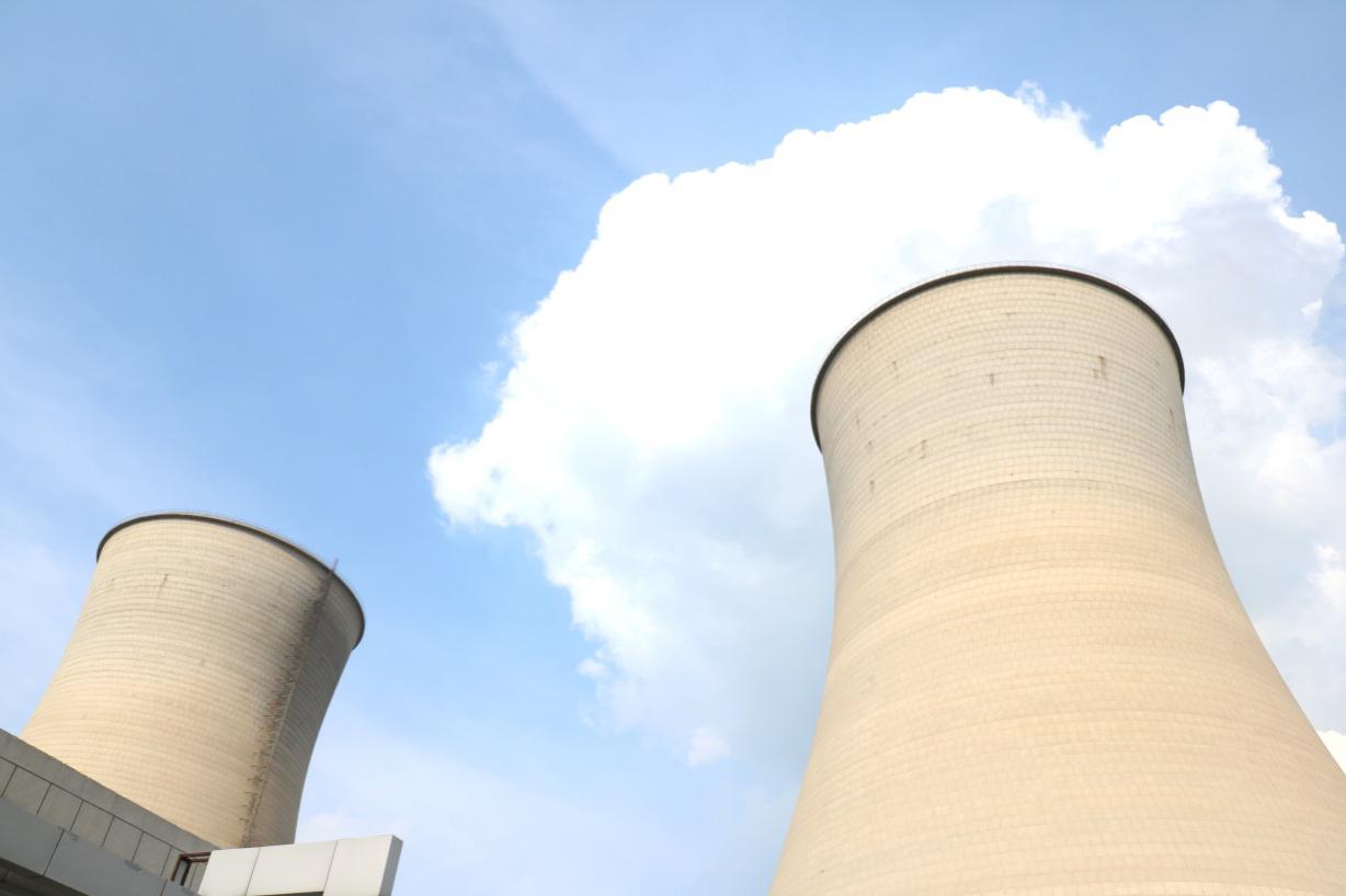 內蒙古呼和浩特市大唐托克托電廠一座冷卻塔上方飄出白色水蒸氣。(張莎莎 攝)