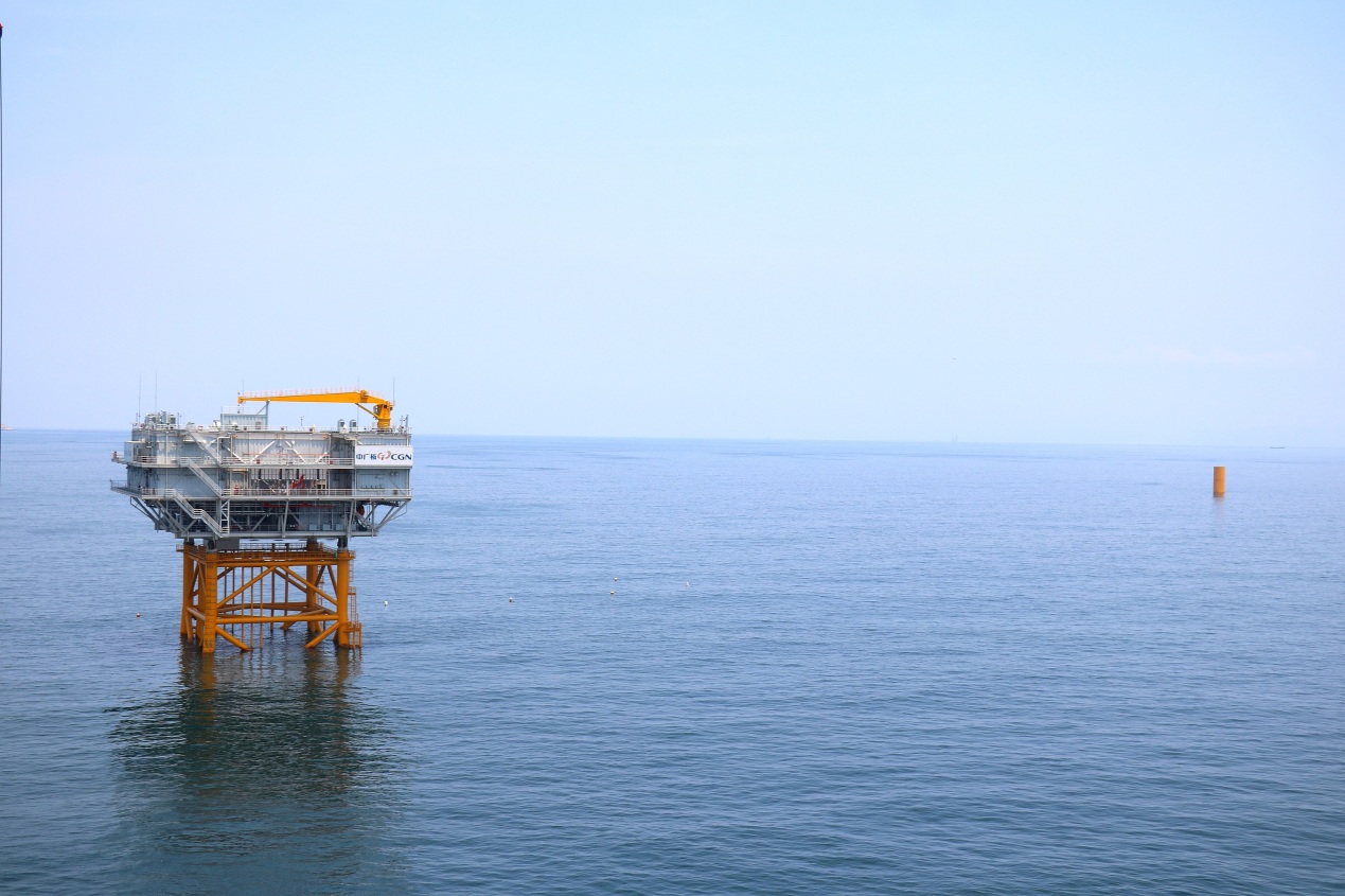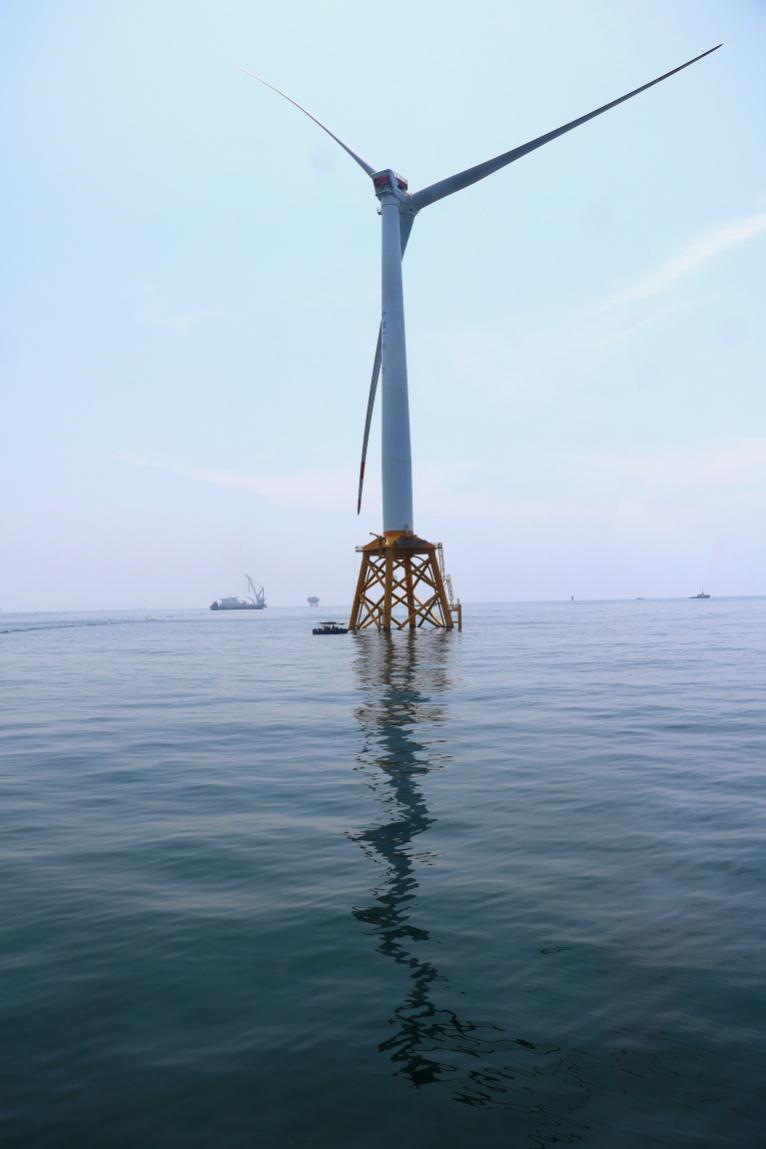當前,3號風(feng)機(ji)(ji)已吊裝完(wan)畢,16臺風(feng)機(ji)(ji)樁(zhuang)基基礎施工(gong),陸上(shang)集控(kong)中心主體工(gong)程已經完(wan)工(gong)。另外,就在記者團到(dao)訪(fang)的前一天,目前國內(nei)最重(zhong)的海上(shang)升壓站吊裝完(wan)成,其上(shang)部模塊(kuai)便重(zhong)達2977噸。