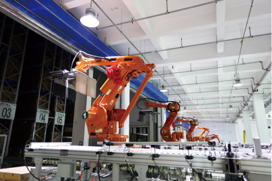 去年啟(qi)用的新時代(dai)健康產(chan)(chan)業園(yuan),總投資(zi)約 16 億元,按照現代(dai)化、國(guo)際化標準建造,年綜合(he)產(chan)(chan)能(neng)可達300億元。記者通過參觀走廊看到,車(che)間內保健食品生(sheng)產(chan)(chan)線(xian)和(he)日化產(chan)(chan)品生(sheng)產(chan)(chan)線(xian)有序運轉(zhuan),只有少數(shu)身(shen)穿潔凈連體服(fu)的技(ji)術工(gong)人在巡視;魚(yu)貫而出(chu)的整箱產(chan)(chan)品被傳送到物流(liu)中(zhong)心,搬運的活兒由(you)碼垛機器人搞定(ding)。顯(xian)然,“智造”已顛覆了輕工(gong)生(sheng)產(chan)(chan)的傳統面貌。