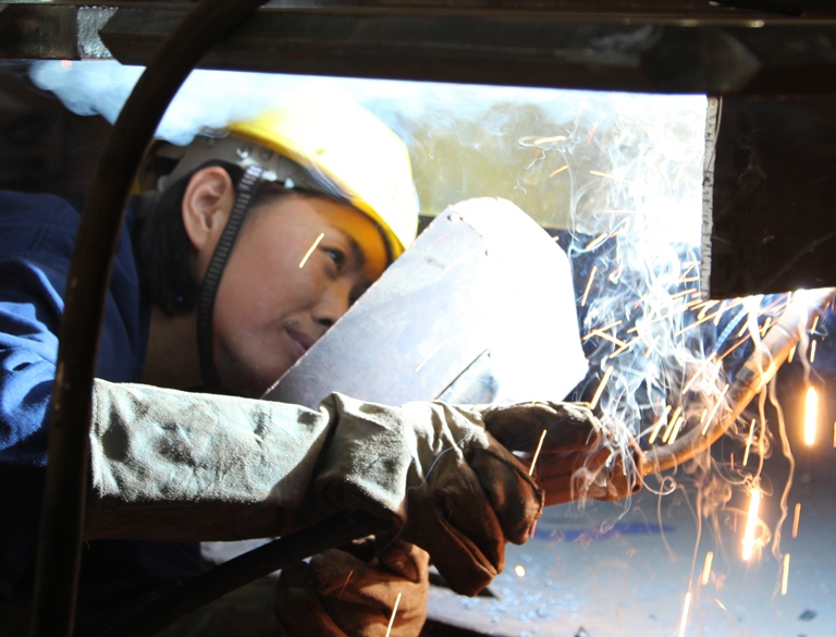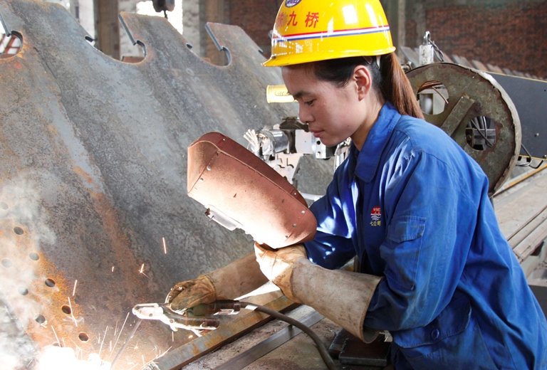 女孩子都愛美(mei),王中美(mei)也想(xiang)過轉(zhuan)行(xing)(xing)換工種。“再試(shi)試(shi)看吧(ba)”,不想(xiang)放棄的(de)另一(yi)個念頭,還是占據了上風。這一(yi)試(shi),就堅持到(dao)了現在。和她同期進入(ru)企業(ye)干電焊的(de)7位女工先后(hou)轉(zhuan)行(xing)(xing),“男同志(zhi)能(neng)干的(de)工作自己也能(neng)干”,王中美(mei)鼓勵自己。