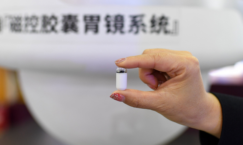 圖為11月4日(ri)拍攝的磁控(kong)膠囊胃(wei)鏡(jing)(jing)(jing)系(xi)統(tong)。膠囊胃(wei)鏡(jing)(jing)(jing)與(yu)傳(chuan)統(tong)胃(wei)鏡(jing)(jing)(jing)最大的不(bu)同(tong)就(jiu)在(zai)于(yu),可以不(bu)插管做胃(wei)鏡(jing)(jing)(jing)。(人(ren)民網(wang)(wang)記者 翁(weng)奇羽(yu)(yu) 攝)11月4日(ri)拍攝的磁控(kong)膠囊胃(wei)鏡(jing)(jing)(jing)系(xi)統(tong)。膠囊胃(wei)鏡(jing)(jing)(jing)與(yu)傳(chuan)統(tong)胃(wei)鏡(jing)(jing)(jing)最大的不(bu)同(tong)就(jiu)在(zai)于(yu),可以不(bu)插管做胃(wei)鏡(jing)(jing)(jing)。(人(ren)民網(wang)(wang)記者 翁(weng)奇羽(yu)(yu) 攝)